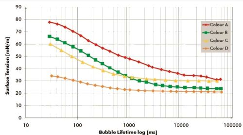 코팅 색상의 설계에서 중요한 요소 중 하나는 동적표면장력을 측정하여 습윤과 흐름 특성을 분석하는 것이다.